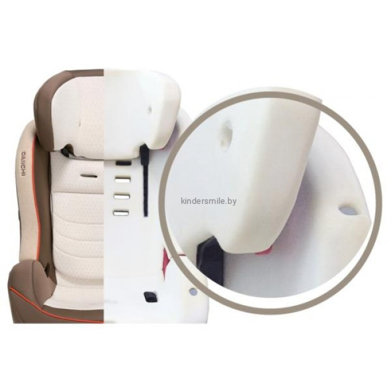 Все элементы чехла изготовлены из фирменного материала AeroCool. Группа 0+/1/2 для детей от 0 до 25 кг, и с рождния до 7 лет. Чаша автокресла выполнена по системе «яичная скорлупа». Эксклюзивная разработка Daiichi. Позволяет сохранить правильное положение туловища младенца, равномерно распределить давление на голову и свести к минимуму вибрацию во время движения. Дополнительная анатомическая подушка с эффектом памяти поддерживает позвоночник в правильном положении. Положение для сна подойдет даже новорожденным. Модель с низким центром тяжести повышает рассеивание удара. Отличные показатели на фронтальных краш-тестах. Каркас автокресла сделан из сверхпрочного АВС пластика - он ударопрочный и термоустойчивый. Дополнительные защитные функции обеспечивает покрытие из амортизирующего и вибропоглощающего материала, который также создает эффект ортопедической подушки. Безопасность с трехслойным абсорбентом ударов T-SIP (Triple Side Impact Protection) - он позволяет избежать синдрома детского сотрясения во время поездки и эффективно защищает маленького пассажира в случае бокового или фронтального удара. Пятиточечный ремень компании Sabelt, которая работает с ремнями безопасности для гоночных автомобилей. Он отлично рассеивает удар и переносит высокое давление без поломок и деформаций. У спинки автокресла предусмотрено 4 положения наклона при расположении против хода движения и 3 положения наклона при установке по ходу движения. Подголовник имеет 7 режимов высоты.