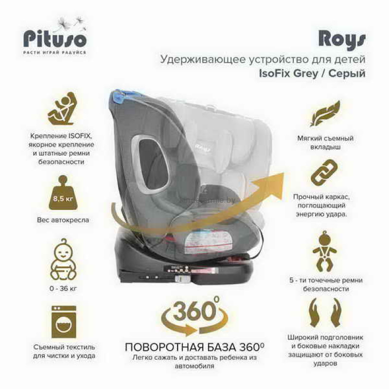 Модель Pituso Roys – это универсальное поворотное кресло на 360° кресло, которое будет расти вместе с ребенком!
