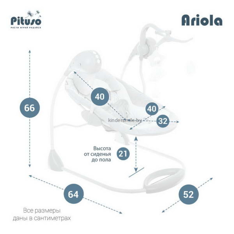 Электрокачели Pituso Ariola станут незаменимым помощником в семье с младенцем: они гарантированно подарят комфорт малышу и избавят от множества забот его родителей. Стальной корпус изготовлен из прочного материала, ткань подкладки мягкая и удобная, заботится о детской коже.