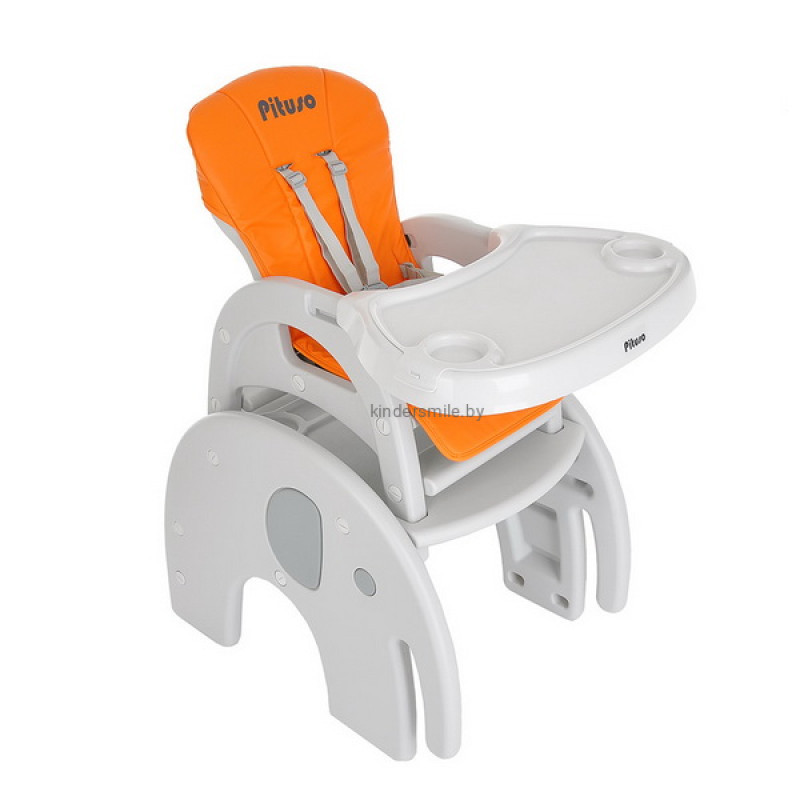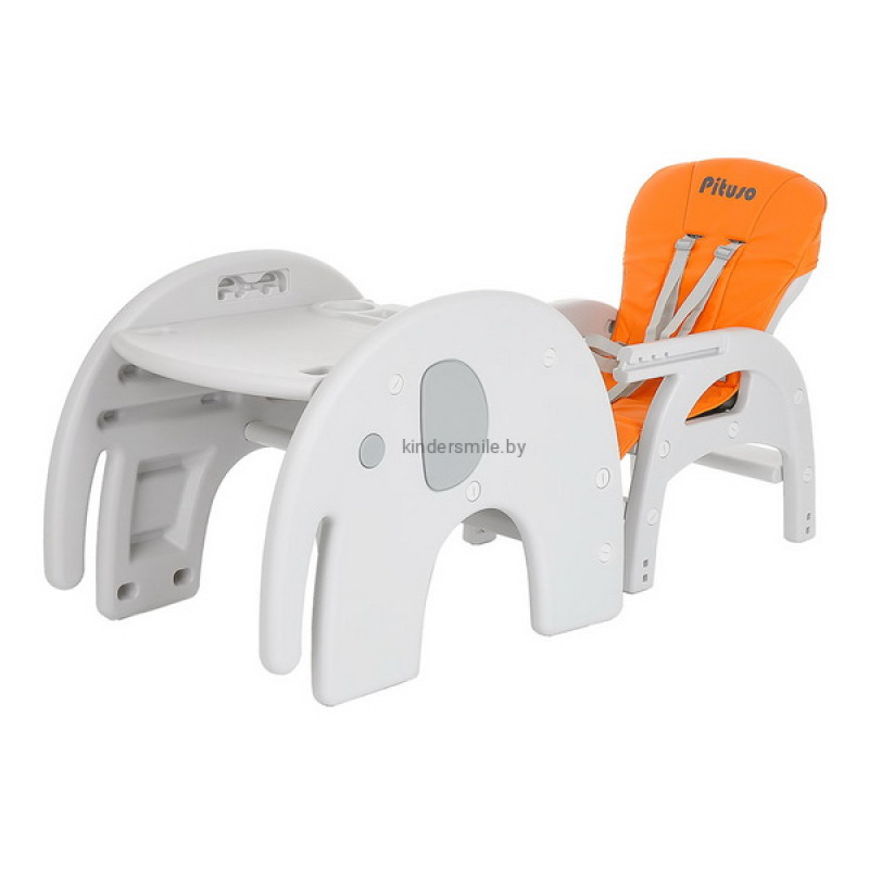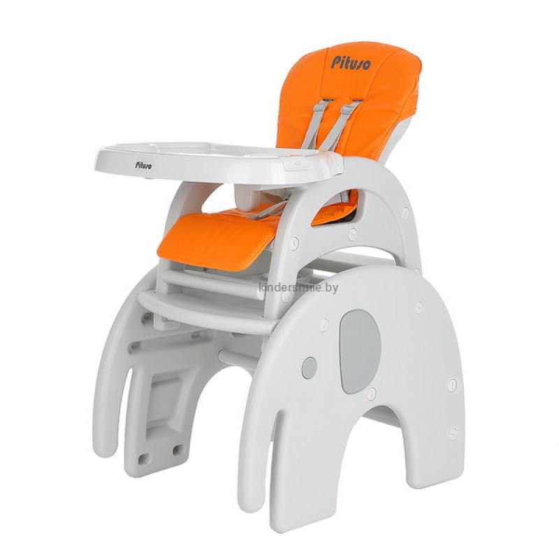 Стул-трансформер для кормления 2 в 1 Pituso Elephant растет вместе с ребенком. Основные его преимущества – это устойчивость и легкий вес. В собранном виде может быть высоким стульчиком для кормления со съемным регулируемым столиком и 5-точечными страховочными ремнями безопасности. Спинка регулируется в 3 положениях, что позволяет ребенку вздремнуть после сытной трапезы. Трансформируется в отдельную комбинацию – стол + стул в форме слона, за которым Вашему малышу будет интересно играть и заниматься творчеством.
