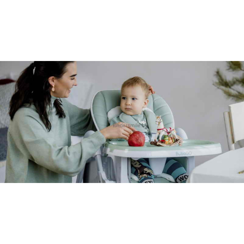 Стульчик BubaGO AMELIA имеет регулируемую спинку и подножку в трех положениях, что позволяет комфортно разместить ребенка в положении полулежа.