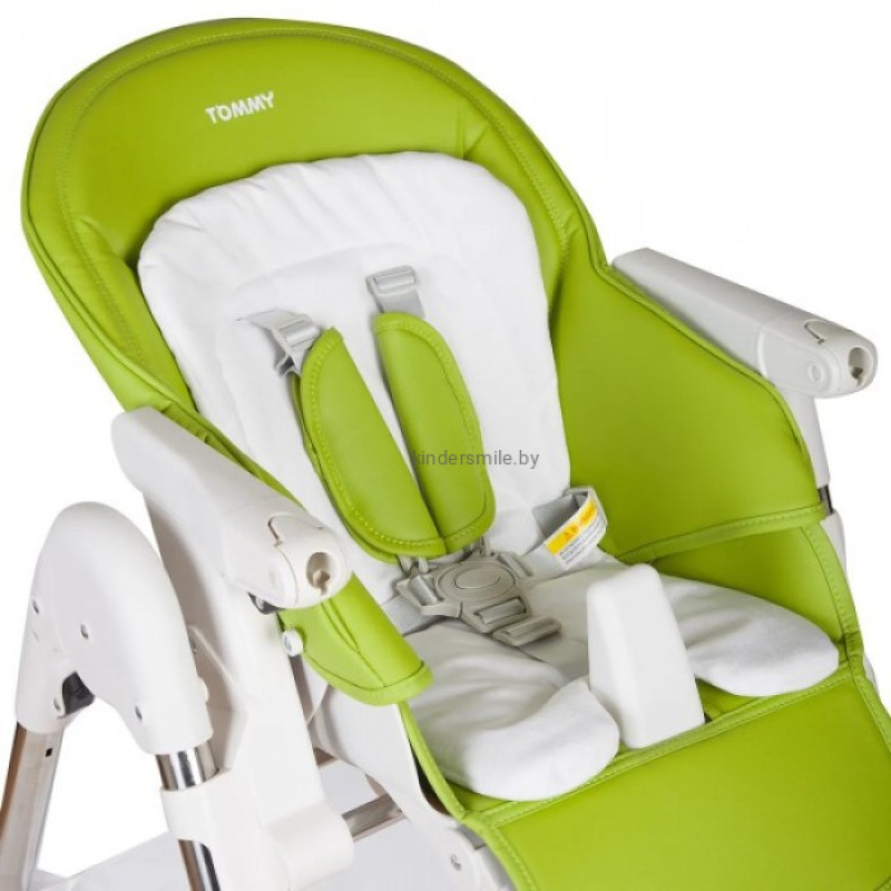 Стул для кормления BON APPETIT – это практичный и удобный стульчик для кормления малыша, благодаря которому прием пищи станет приятным занятием. Столик разработан для того, чтобы кормление было удобным как для родителей, так и для их малышей. BON APPETIT имеет мягкое сидение из экокожи, что упрощает уход за стульчиком. Спинка стульчика регулируется в 5-ти положениях. Безопасность обеспечивают пяти точечные ремни безопасность и подножка (имеет 4 положения), которая поможет малышу не соскользнуть со стульчика. Сидение регулируется в 7 уровнях высоты, что помогает настроить его под любую высоту обеденного стола. BON APPETIT возможно фиксировать в 3 положениях: 2 горизонтальных и 1 вертикальное. Столешница съемная, что позволяет её вымыть без каких-либо трудностей. Также под сидением есть тканная корзинка для игрушек. Стульчик легко можно передвигать, за счет 4 съемных колесиков, которые можно зафиксировать в любой момент. Стул очень удобен в использовании и транспортировки и занимает мало места.