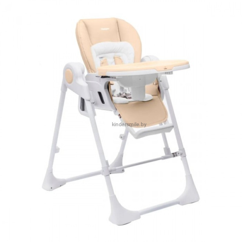 Обивка сидения изготовлена из эко-кожи, которую при необходимости можно легко снять для чистки. Также легко можно снять столик и поднос.