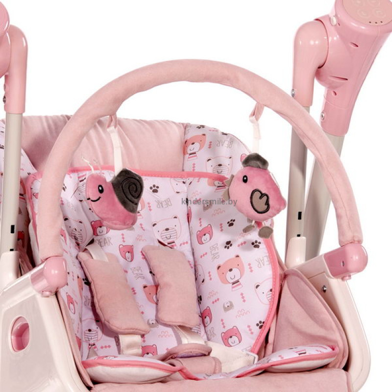 Регулируемая спинка в 4 положениях, когда продукт используется в качестве кресла для кормления и 2 положения спинки - когда он используется в качестве качания ребенка.Регулировка высоты в 6 положениях