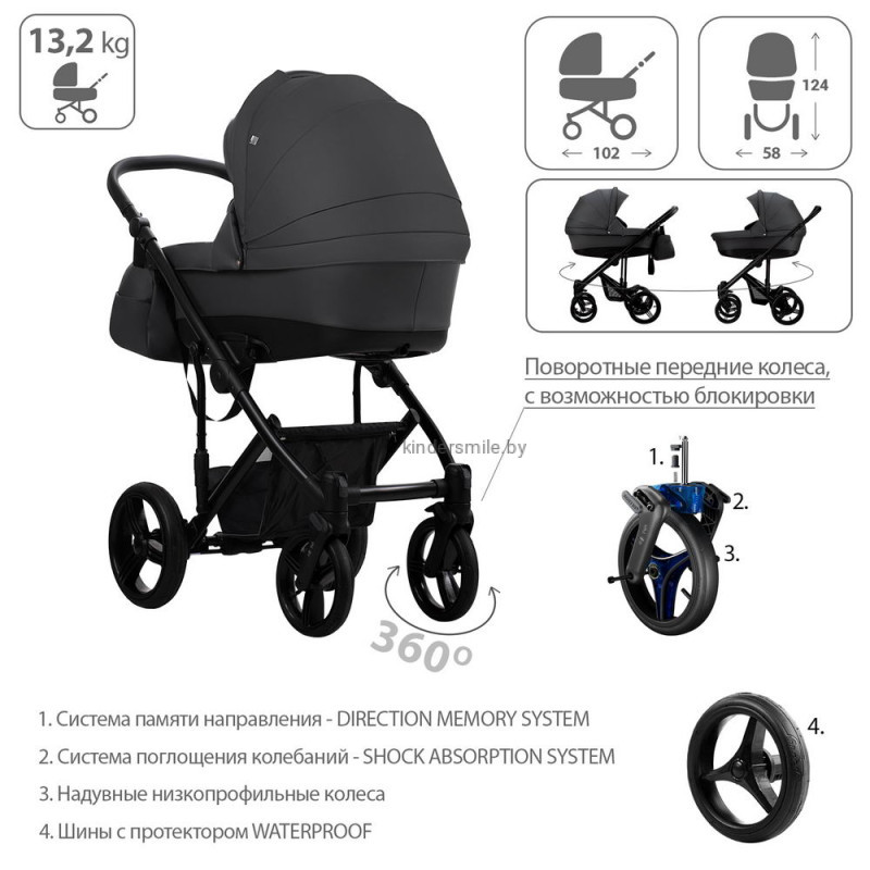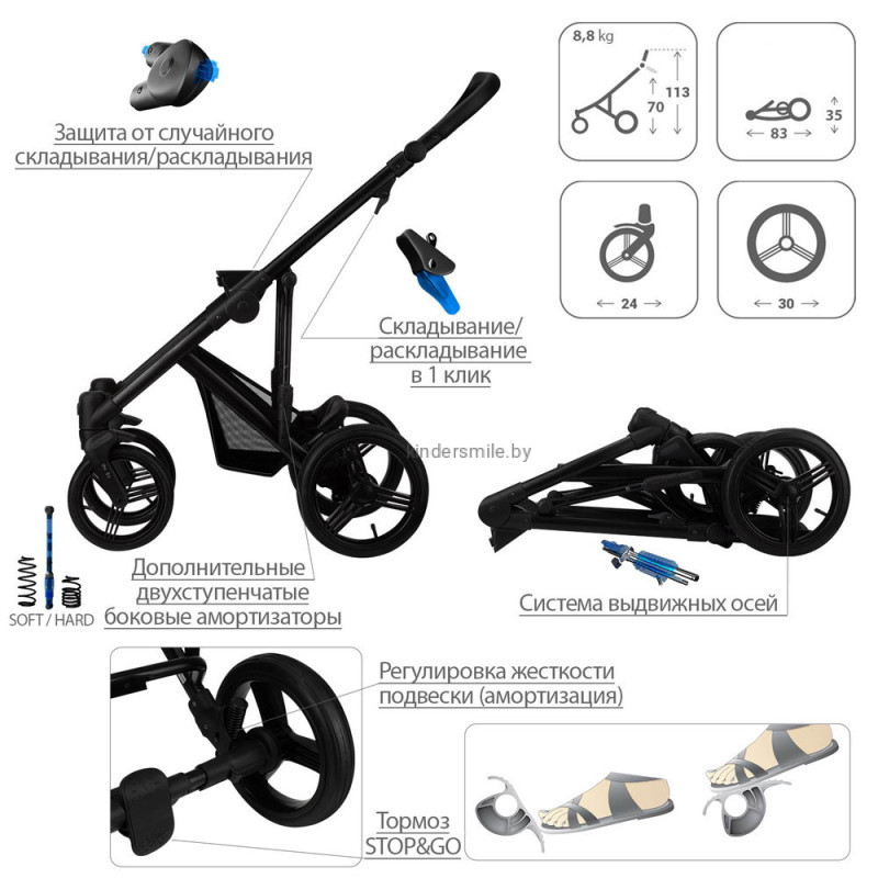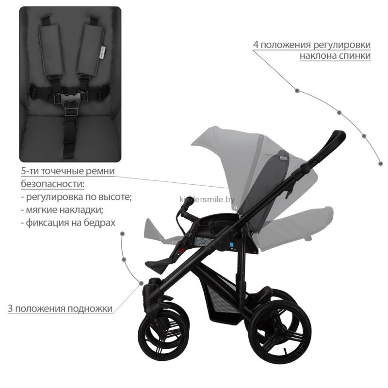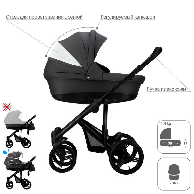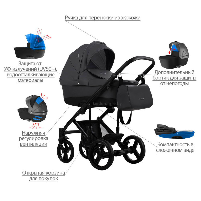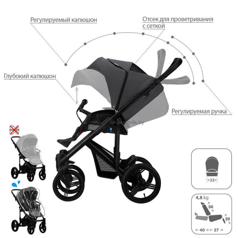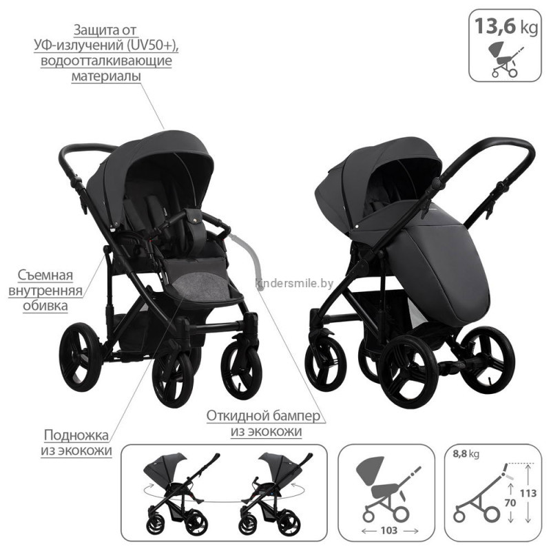 - Обивка коляски: водоотталкивающая, съемная, с УФ-защитой 50+.