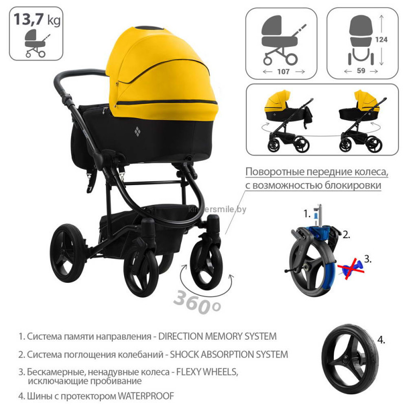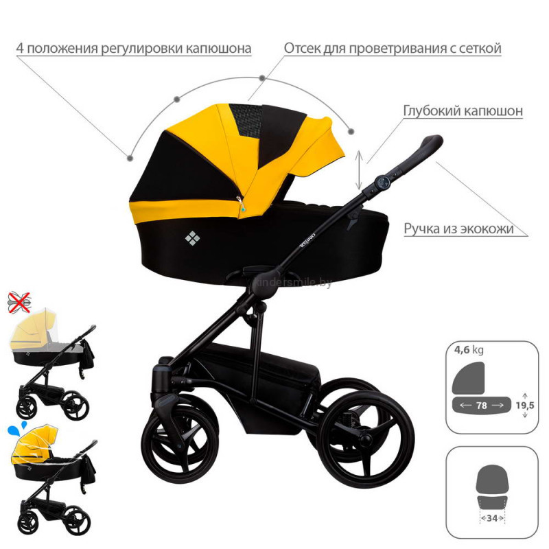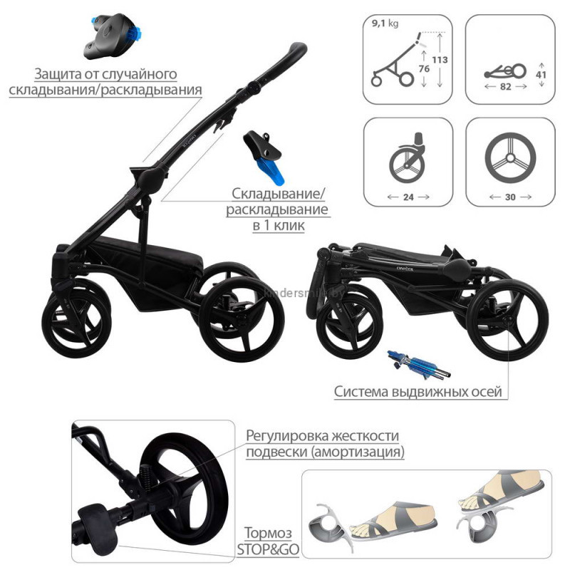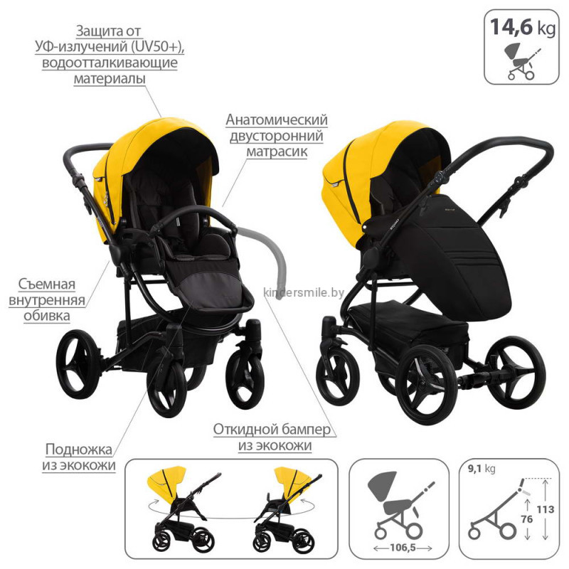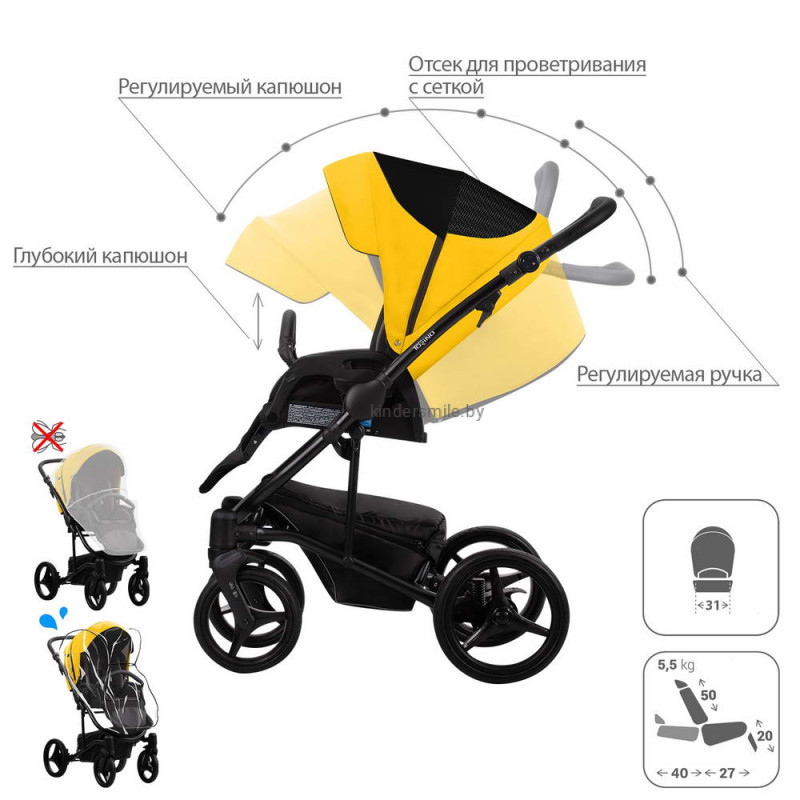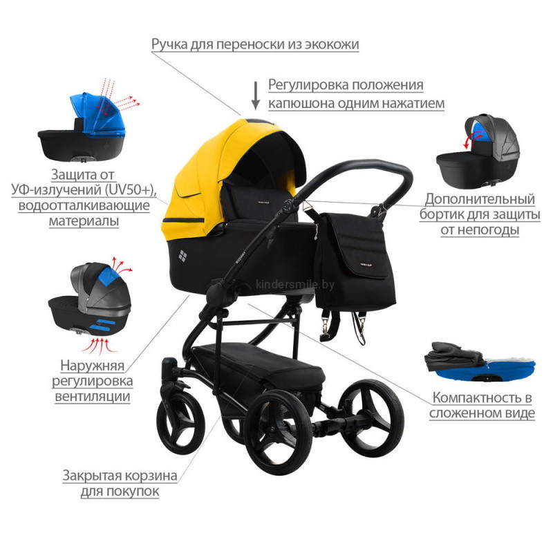 - Обивка коляски: водоотталкивающая, съемная, с УФ-защитой 50+.