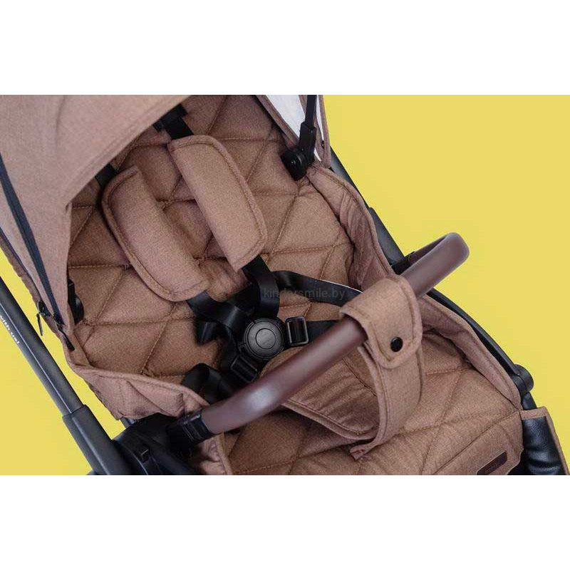 Телескопическая ручка из эко кожи легко адаптируется под рост любого родителя, так как имеет регулировку в 4-х фиксируемых положениях.