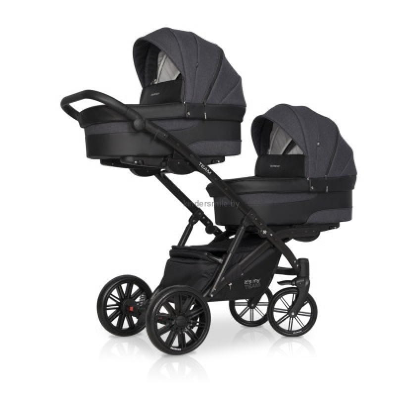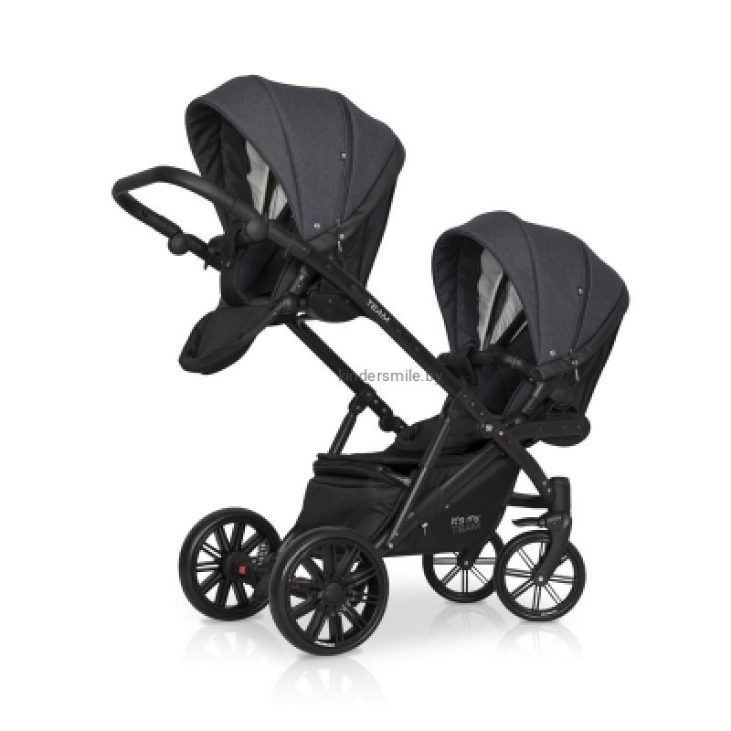 Детская коляска для двойни Riko Team 2020 - 2021 New 2 в 1 - обновленный вариант очень удобной, а главное, компактной коляски для двоих детей с рождения до 3-4 лет. Это коляска представлена на компактной раме, специально усиленной для использования сразу для двоих детей. Такая рама позволяет молодой маме без труда заезжать на любые пандусы, легко проезжать в подъезде и помещаться в лифт. Блоки расположены высоко от земли, а между блоками есть удобное расстояние для контроля за малышами. В сложенном виде рама очень компактно и практически не отличается от обычной стандартной коляски для одного ребенка. Блоки легко переставляются в зависимости от возраста детей и их потребностей. Коляска может использоваться как для двоих детей одного возраста, так и для погодок.