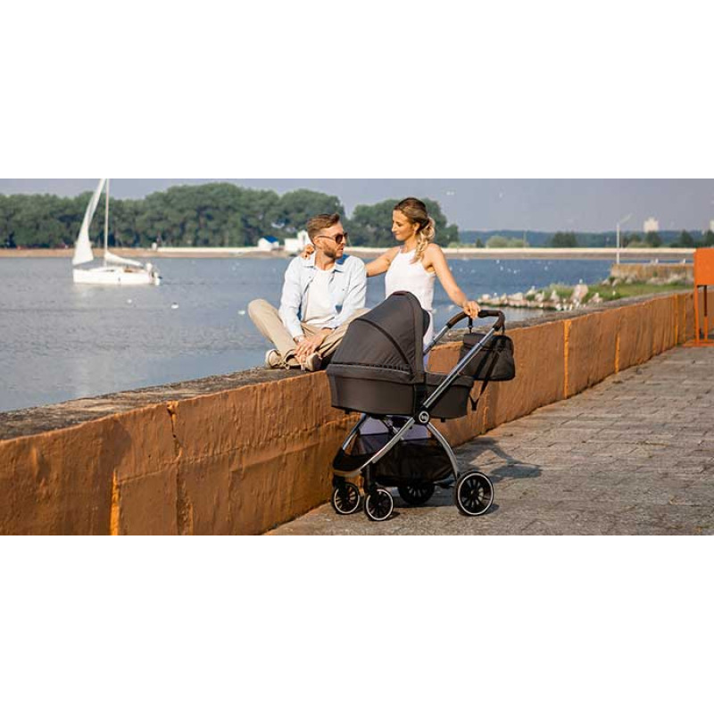 Люлька, и прогулочный блок надежно и просто монтируются на раму без дополнительных адаптеров, что исключает люфт люльки, блоки легко снимаются при необходимости. Устанавливаются блоки реверсивно, то есть в различных направлениях движения, что делает прогулку интересной и познавательной для малыша. Коляска Bubago Lacio имеет большой капюшон-батискаф в люльке и прогулочном блоке, раскрыв который можно закрыть практически всю коляску и защитить ребенка в ней от ветра и дождя.
