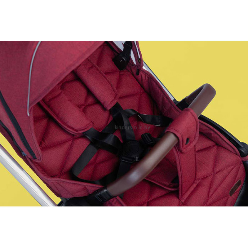 Прогулочный блок имеет просторное сидение и может легко превращаться в спальное место. Спинка и подножка имеет несколько положений регулировки вплоть до горизонтального. Эко кожа на подножке находиться на уровне обуви малыша, что позволяет не вымазывать ее вовремя прогулки. В качестве системы безопасности в прогулочном блоке используются пятиточечные ремни фиксации, съемный защитный бампер с эко кожей, механизм против сползания.