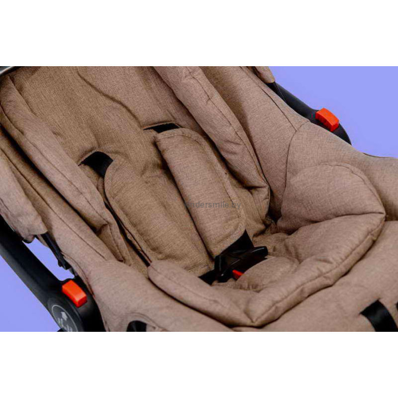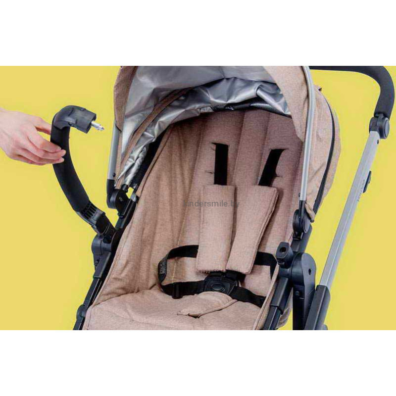Прогулочный блок имеет 3 положения: сидя, полулежа и лежа. Он реверсивный, поэтому когда малышу захочется изучать мир и смотреть по сторонам, вы сможете перевернуть сиденье лицом по ходу движения. Высота спинки - 46 см, глубина сидения - 24 см, ширина - 34 см, длина подножки - 22 см. Капюшон имеет дополнительный отсек для удлинения, а чтобы мама смогла наблюдать за малышом - мы предусмотрели смотровое сетчатое окошко. Для безопасности малыша прогулочный блок оборудован 5-ти точечными ремнями безопасности с мягкими накладками и регулировкой по высоте. Подножка регулируется по высоте и имеет потайной кармашек с обратной стороны. Бампер малыша выполнен из экокожи, поэтому можете не переживать, что малыш его испачкает - достаточно протереть влажной салфеткой.