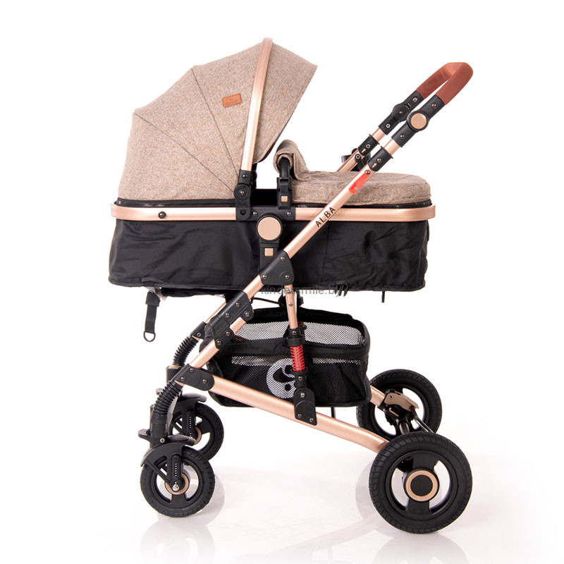 Колеса резиновые, передние — поворотные и могут быть зафиксированы в одном положении благодаря надежным фиксаторам. Спинка сиденья плавно регулируется для комфортного отдыха ребенка. За безопасность отвечает бампер и 5-точечные ремни. Глубокий солнцезащитный козырек со смотровым окошком и чехол для ножек защитят от непогоды. Объемная корзина позволит вместить все необходимые вещи и покупки. Складывается по типу книги до компактного размера.