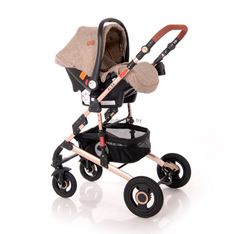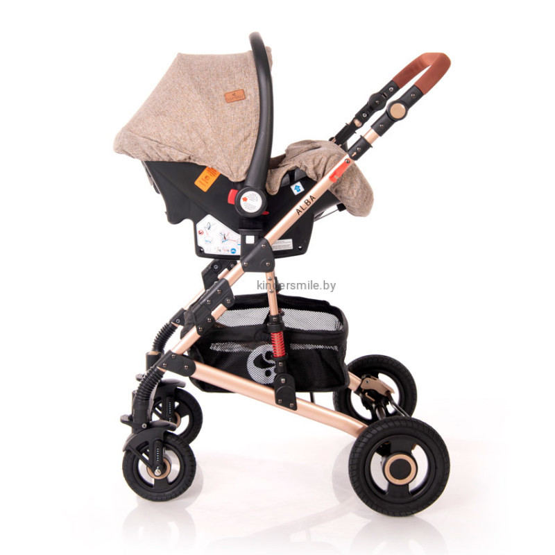 В комплектацию входят матрасик, сумка для мамы с непромокаемым вкладышем для пеленания, комфортная автомобильная люлька с чехлом для ног, которая крепится при помощи адаптеров.