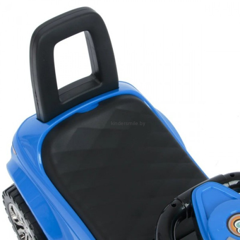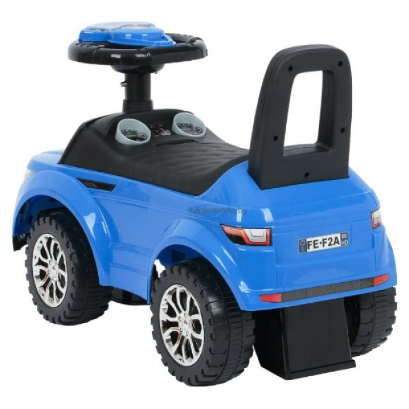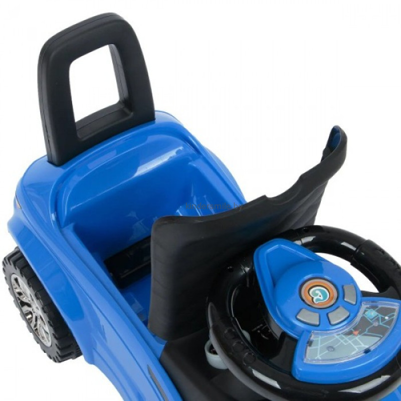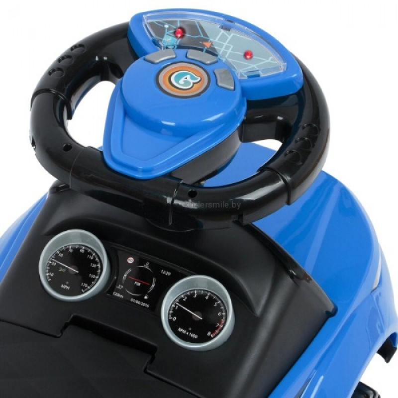 Передние фары а также задние работают от батареек и управляться от кнопки. Питание музыкальной панели происходит от 2-х батарей AA 1.5 V. (в комплект не входит). Максимальный вес ребенка 27 кг. Под сидением имеется отдел для игрушек. Каталка рассчитана на детей от 12 до 36 месяцев.