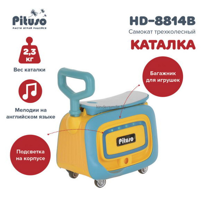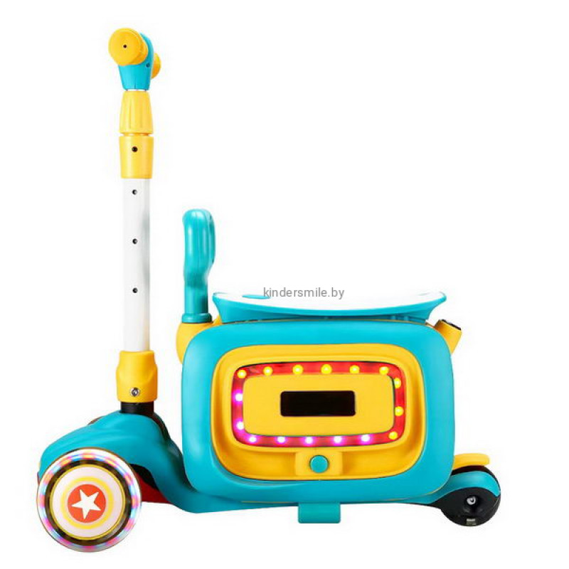 Самокат 3 в 1 ( самокат, беговел, каталка). Интересное решение от бренда Pituso сделают прогулки веселыми и интересными. Самокат состоит из двух частей, которые можно использовать как вместе с самокатом, так и без. Основные функции: 3-х колесный складной самокат, беговел и каталка. Самокат состоит из двух частей, вторая часть съемная и может использоваться отдельно, с помощью встроенных колес превращается в каталку. Под сиденье расположен удобный багажник куда ребенок может положить небольшие игрушки. Самокат оснащен различными мелодиями (на английском языке), колеса самоката светятся, а каталка имеет разноцветную подсветку.