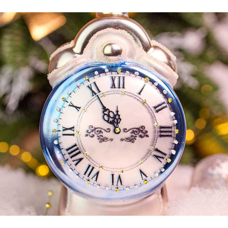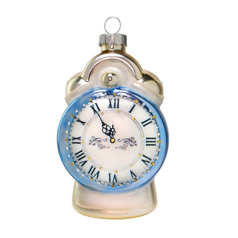 Елочное украшение из стекла Будильник голубой