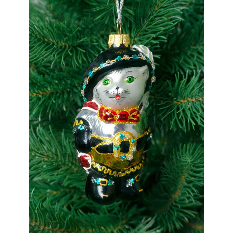 Елочное украшение из стекла Кот в сапогах